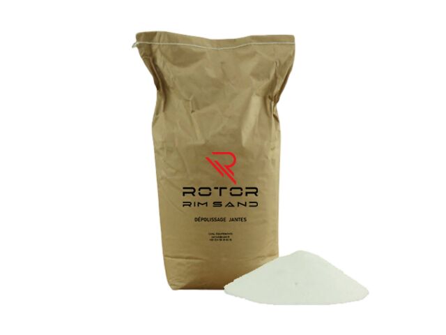 Abrasif pour dépolissage jantes aluminium Préparation de surface avant vernis ou peinture Résultat homogène et reproductible Adapté cabine de sablage ROTOR Rim Sand Conditionnement : sac de 25 kg