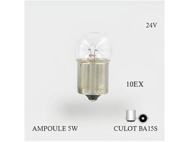 L'ampoule R5W 24V tube Culot BA15S de NovaGroup est un produit essentiel pour l'éclairage des véhicules poids lourds. Conçue pour résister à un usage intensif, elle est idéale pour les éclairages de plaque, plafonniers et feux arrière. Avec une fabrication en verre traité UV, elle est assurée contre le jaunissement et garantit une longévité optimale.