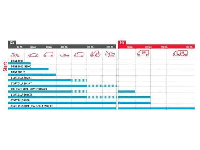 Startzilla a été développé comme un puissant booster portable pour une utilisation professionnelle dans toutes les conditions : voitures, camionnettes, camions, bus, tracteurs, etc.