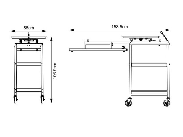 Set composé d'un chariot de matériel avec plateau tournant pour cabine de sablage MW-Tools CAT990.