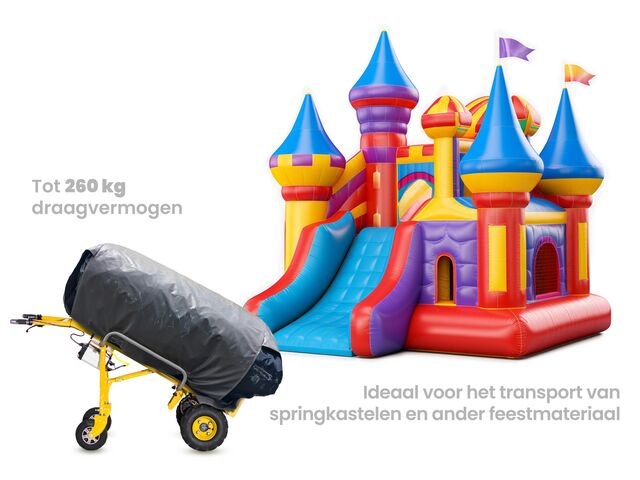 - Fonction de freinage à 100 % : le diable freine complètement lorsque la poignée est relâchée. Utile dans les situations où vous souhaitez arrêter la charge sur une pente, une plaque de conduite, ... ou pour sécuriser le diable.