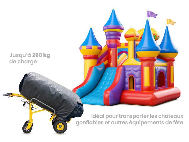 Chariot de transport motorisé polyvalent motorisé avec batterie au lithium rechargeable, pour le transport de cartons lourds, de caisses, de machines, d'appareils électroménagers, chateaux gonflables, meubles de jardin, etc.