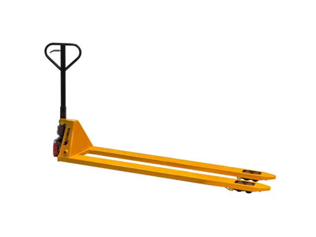 - Le chariot se dirige intuitivement et en douceur grâce à une longue poignée de direction à ressort, comme un transpalette