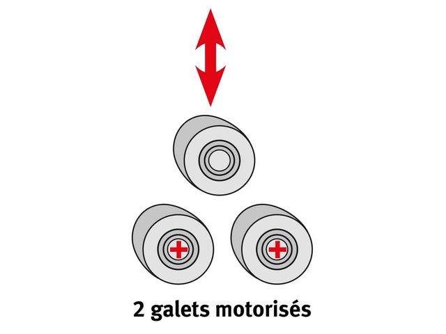 Le diamètre du galet supérieur est 155 mm tandis que les diamètres des galets inférieurs sont 155 mm.