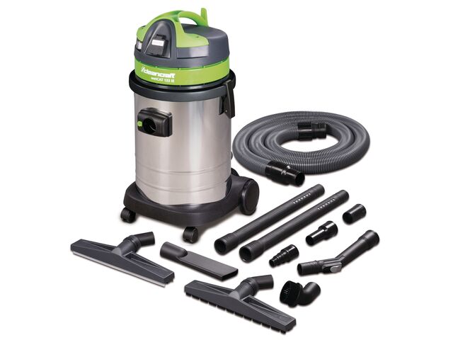 Aspirateur eau et poussière avec prise intégrée - 33 litres cuve en acier inoxydable - 1 moteur 1 kW 230 V - 72 dB(A) Cleancraft WETCAT 133 IE - Aspirateur pour véhicules