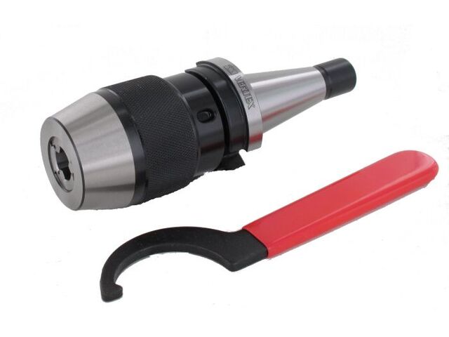 Coffret avec mandrin à pinces ER DIN69871 SK40, pinces DIN6499 et clé à crochet.