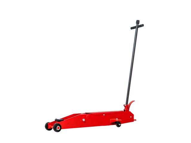 Cric hydraulique robuste avec rallonge extra longue et capacité de 5 tonnes.