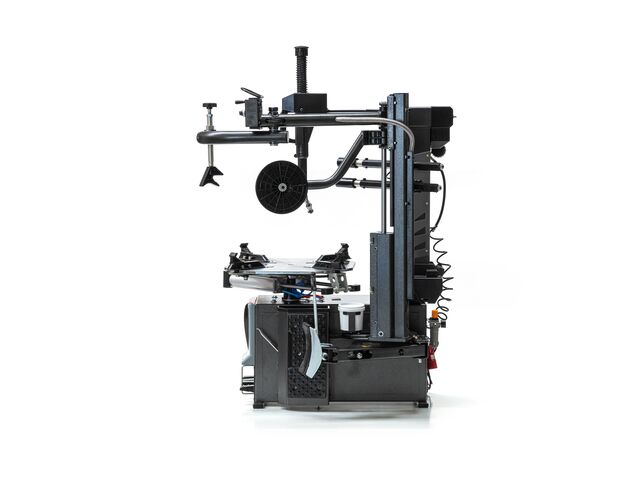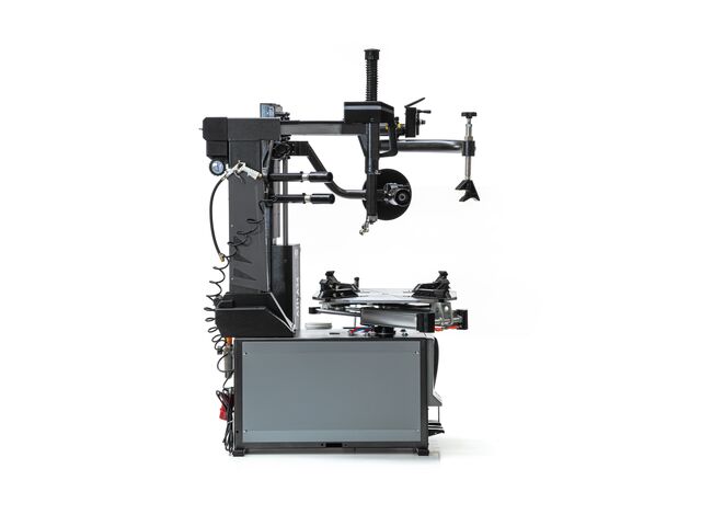 Commandé à l'aide de pédales ergonomiques, il permet le pivotement arrière avec serrage pneumatique de la tête de montage, facilitant ainsi le retrait automatique des jantes verticales et horizontales. L'extracteur latéral, équipé de cylindre en aluminium à double action et d'un système anti-blocage, aide à décoller le talon du pneu de la jante tout en évitant le coincement.
