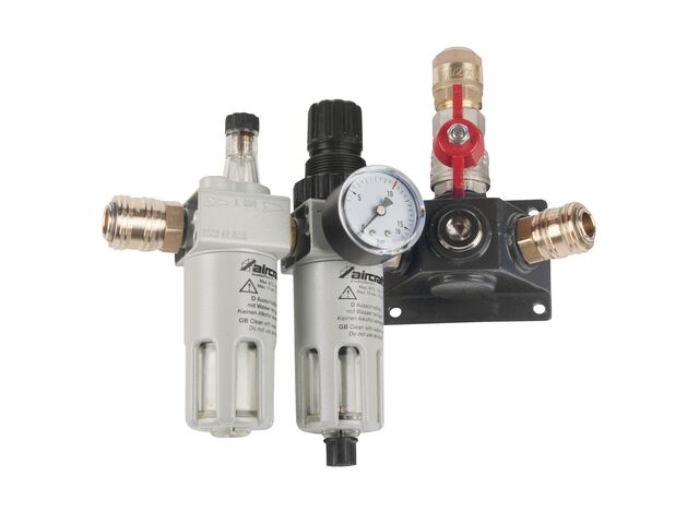 Kit distributeur d'air comprimé mural 22 mm - avec filtre régulateur, lubrificateur, vanne à boisseau sphérique et deux raccords rapides Aircraft 2159522