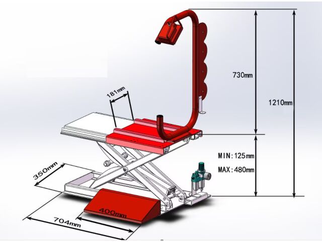 Élévateur pneumatique pour pneus jusqu'à 75 kg - Idéal pour équilibreuses - Levage 460 mm MW Tools BBLIFT01