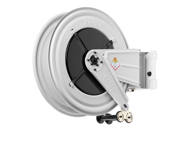 L'enrouleur RAASM S.530 est un modèle professionnel pivotant conçu pour supporter des conditions de travail exigeantes avec de l'eau chaude sous haute pression. Ce modèle de la série 530 offre une capacité de tuyau supérieure, idéale pour les grandes installations industrielles.