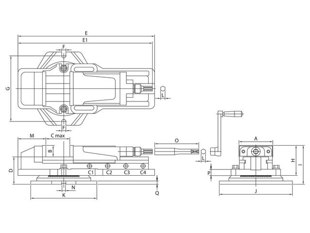 Conseil: mors prismatique est disponible en option, système booster utilise de l'huile hydraulique d'une viscosité de 68 cts, le système booster garantit un an de fonctionnement sans problème, cette pièce d'usure peut être remplacée, ce qui vous permet de profiter longtemps de votre étau. Pour garantir la précision, il est préférable de démonter la base tournante.