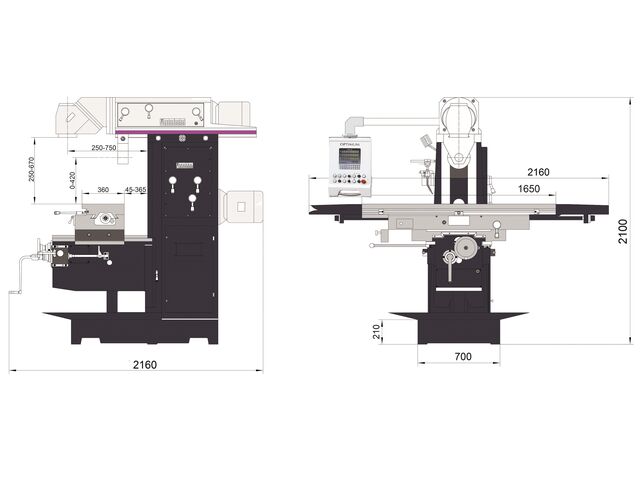 Fraiseuse universelle avec tête de fraisage de type Huron, 3 avances mécaniques automatiques et affichage digital sur 3 axes.