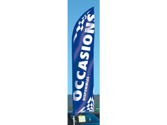 Grand drapeaux : Mât et super voile avec texte "OCCASION" | Kit super voile élégance - produit présenté par APA FRANCE - Créateur de PLV Automobile