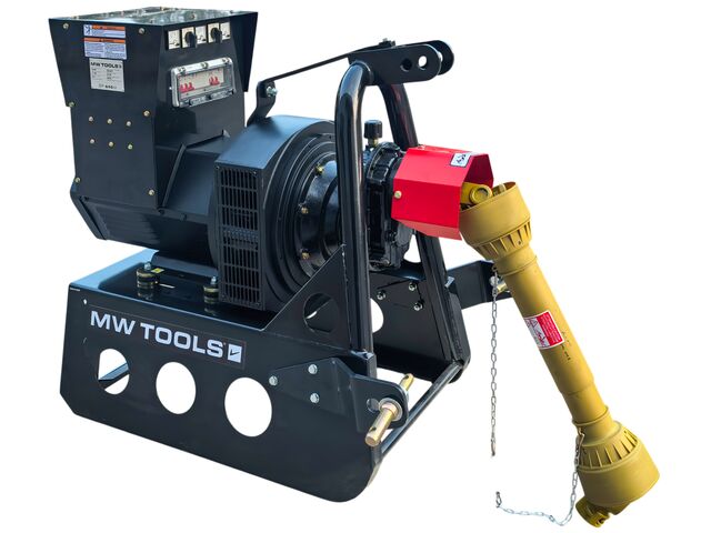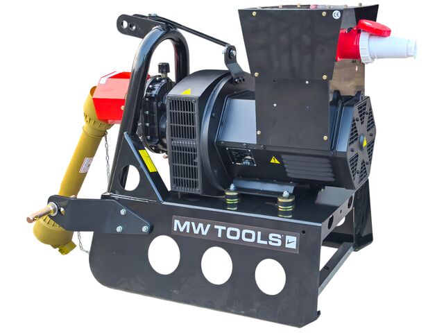 Groupe électrogène agricole 30 kW (37,5 kVA) pour tracteur dès 30 ch - 230 V et 400 V - Régulateur AVR - Cardan et attelage trois points MW Tools PTG300 - Groupe électrogène
