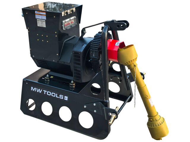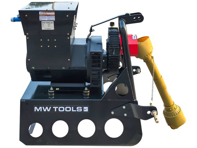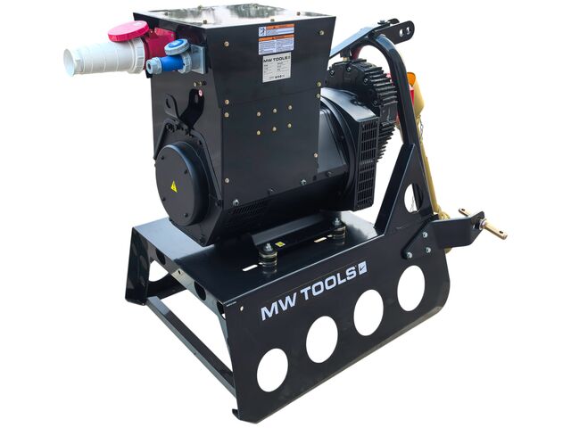 Groupe électrogène agricole 40 kW (50 kVA) pour tracteur dès 80 ch - 230 V et 400 V - Régulateur AVR - Cardan et attelage trois points MW Tools PTG400 - Groupe électrogène