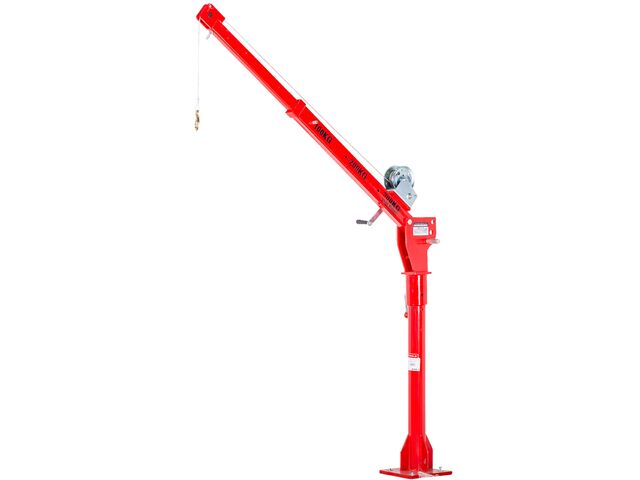 Grue compacte rotative à 360° avec treuil électrique de 12 V, pour une utilisation dans des endroits sans électricité ni batterie.
