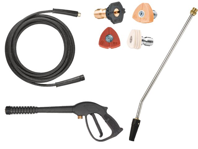 Conception ingénieuse : Avec des supports pratiques pour le pistolet, la lance et le tuyau haute pression, tout reste propre et organisé. La poignée pliable avec support d'accessoires rend le transport et le rangement compacts