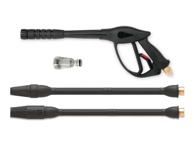 Résultats de nettoyage optimaux : Adaptez facilement la pression de travail à la tâche de nettoyage spécifique, lisible via le manomètre intégré. La lance multifonction permet un jet ponctuel et un jet en éventail avec réglage progressif de l'angle, et offre également une application pratique de mousse via le réservoir de détergent intégré de 2 litres avec réglage facile du dosage.