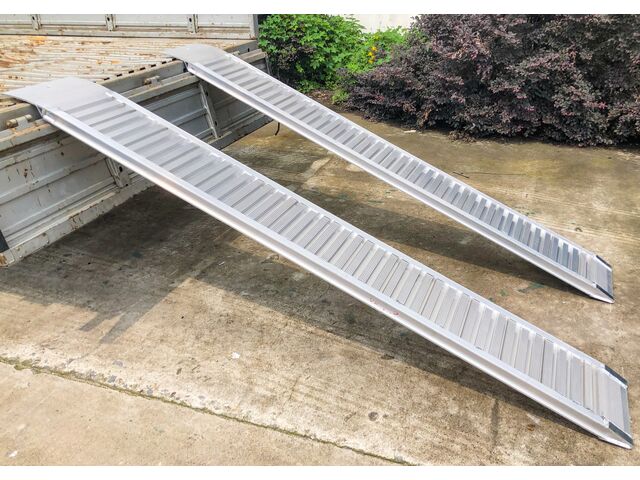 Rampes robustes conçues pour charger des remorques, semi-remorques, fourgons, conteneurs, franchir des seuils, etc. Conviennent aux mini-pelles, engins de chantier, machines agricoles, quads, chariots élévateurs, voitures, etc.
