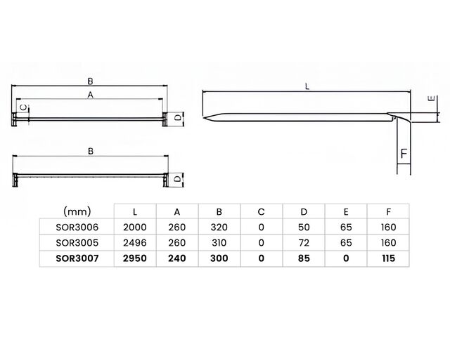 - Capacité : 2790 kg par paire (avec un empattement de 1,5 m)