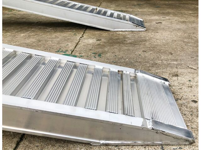 Rampes robustes pour le chargement sur remorques, semi-remorques, fourgons, conteneurs, franchissement de seuils, etc. Conviennent aux mini-pelles, engins de chantier, machines agricoles, quads, chariots élévateurs, voitures, etc.