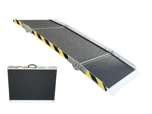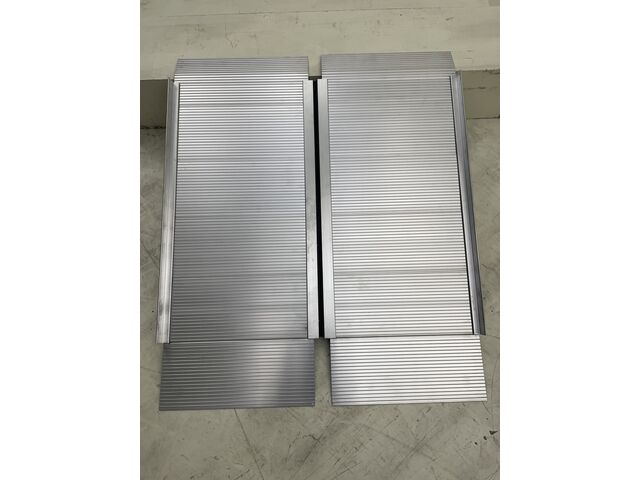 Rampes courtes de 1,26 m pour entrer dans des conteneurs, franchir des seuils, marches, etc. Conviennent pour les machines de jardin, engins de chantier, grues, tracteurs, dumpers, chariots élévateurs, quads, etc.