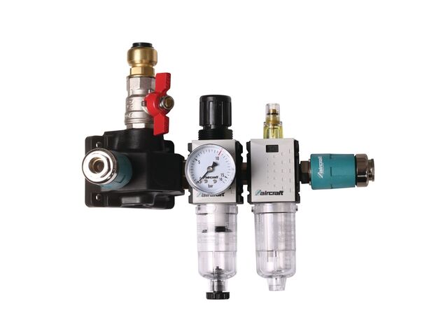 Kit de distribution d'air comprimé mural 15 mm - incluant raccords de sécurité, vanne d'arrêt, filtre régulateur de pression et lubrificateur Aircraft 2158210