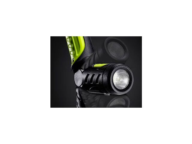 Flux lumineux maximal : 350 lumens (2 LED SMD de 175 lm chacune) Modes & autonomie : - Mode faible : ~ 80 lm, faisceau ~ 13 m, ~ 10 h Distance du faisceau / portée : ~ 45 mètres en mode élevé Batterie : Li‑ion 3,7 V, 700 mAh Poids : ~ 139‑140 g Matériaux : Polycarbonate + ABS Indice de protection / résistance : IP54 (poussière & projections d’eau)