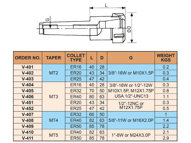 Mandrins à pinces individuels cône morse 5 DIN228 pour pinces ER DIN6499.