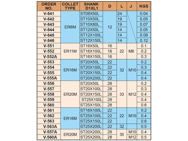Mandrins à pinces mini ER avec queue cilindrique