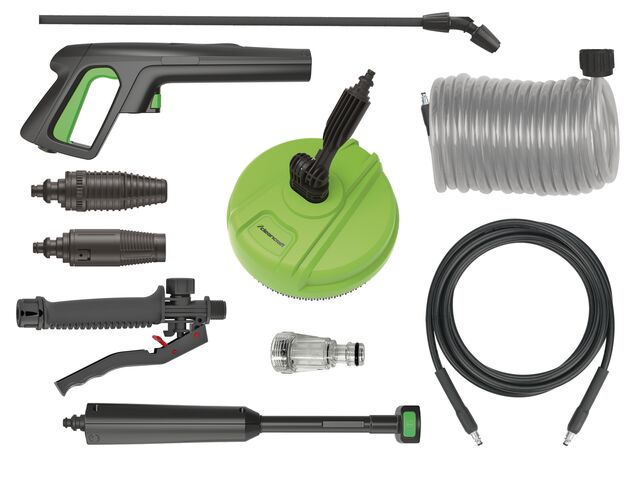 Ce modèle mobile est équipé de deux roues caoutchoutées et d'une poignée ergonomique, ce qui rend le transport particulièrement facile. L'enrouleur de tuyau intégré avec un tuyau haute pression de 8 mètres assure une large zone de travail et un rangement ordonné.