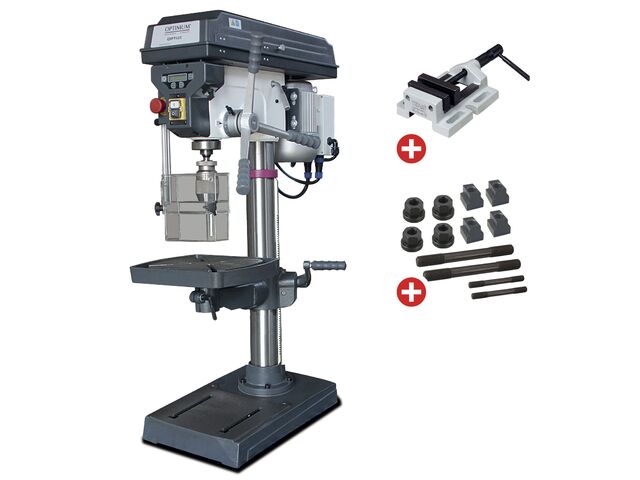 Pack Perceuse-fraiseuse à colonne perçage jusqu'à ø 32 mm CM4/M16 1,5 kW 400 V table croisée et accessoires essentiels Optidrill DH40CT PACK PRO