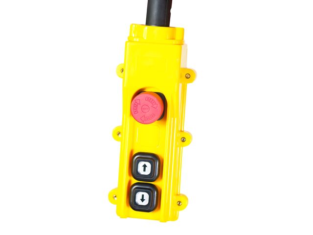 - Télécommande filaire (longueur 6m) avec arrêt d'urgence et câble porteur en acier.