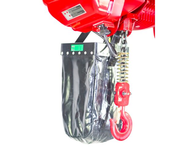 - La chaîne est prise dans un sac en PVC sur le palan, de sorte qu'elle ne gêne jamais le passage.