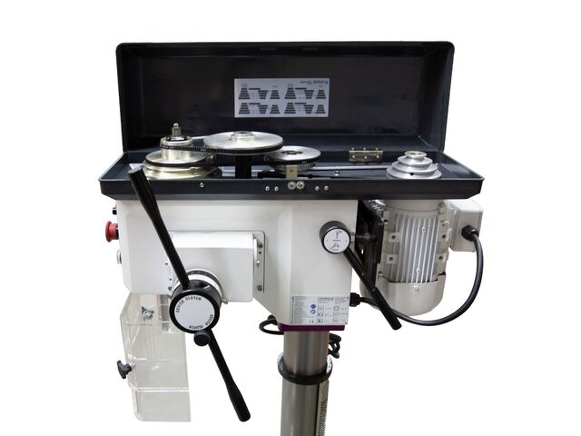 Perceuse d'établi professionnelle avec entraînement par courroie et avance de perçage automatique