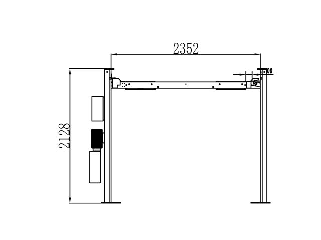 Capacité de levage : 3.6 tonnes Hauteur de levage maximum : 1 900 mm Hauteur de levage minimum : 100 mm Temps de levage (Montée + Descente) : 85 s Hauteur de colonne : 2 128 mm Largeur totale : 2 664 mm Largeur entre colonnes : 2 352 mm Poids net : 880 Kg