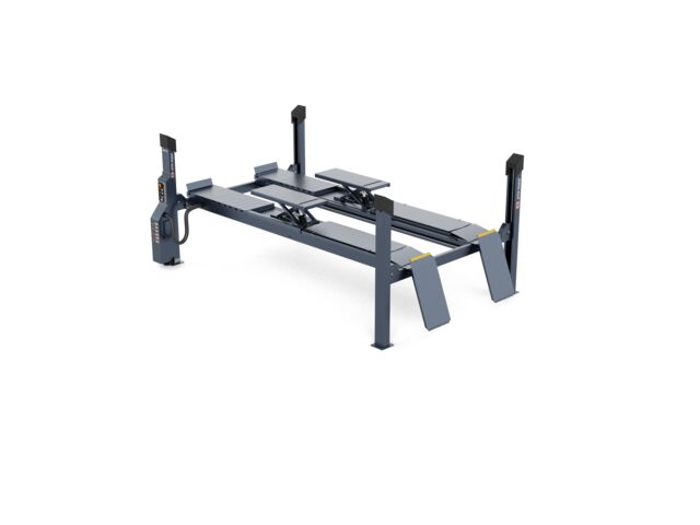 L'élévateur électro‑hydraulique à quatre colonnes combine robustesse et précision.