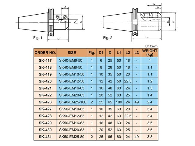 Porte-fraises Weldon SK DIN69871 pour le montage de fraises avec une queue Weldon DIN1835B.