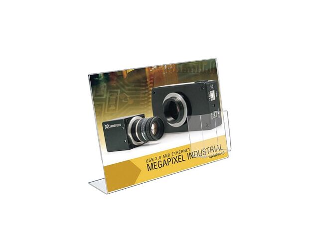 Porte-visuel incliné avec porte-brochure plexiglass sens paysage de la marque EDIMETA