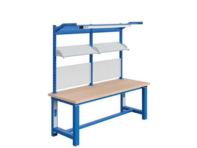 Poste de travail Cubo dans un cadre tout en acier avec en plateau multiplis 2000 mm réglable en hauteur électriquement