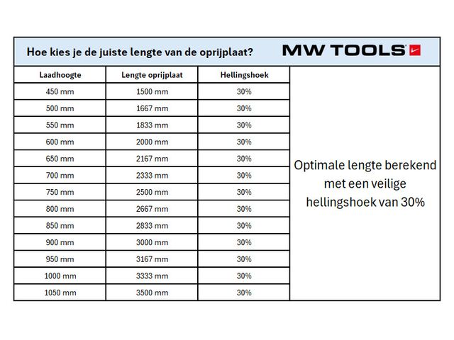 Rampe d'accès aluminium 300 kg - 1830 x 720 mm - pliable MW Tools ARP1003 - Rampe de levage