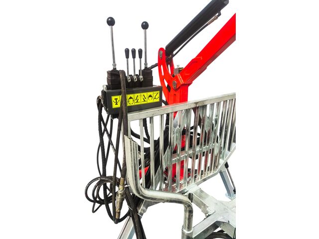 - Fonctionnement entièrement hydraulique : bras de grue, grappin, béquilles et aide à la poussée.