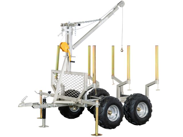 Remorque pour le transport de bois 1400 kg à double essieu avec grue et cadre de plancher