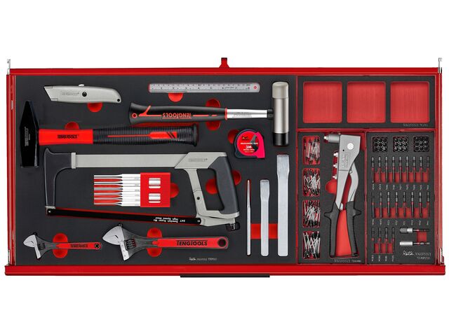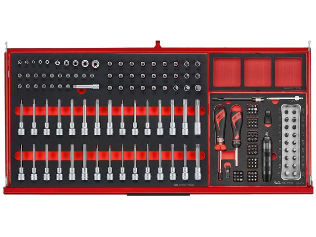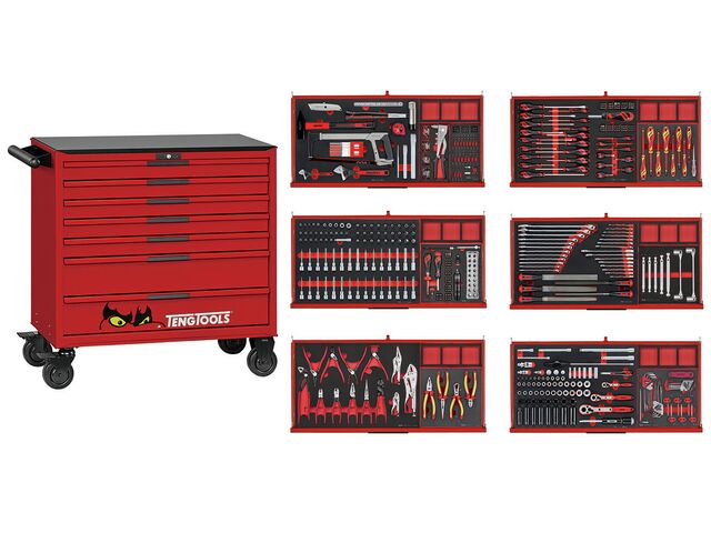 Servante d'atelier rouge professionnelle 7 tiroirs - Midi master set - 637 pièces - rangement avec modules en mousse Teng Tools TKW37R637F - produit présenté par TORROS Equip Garage