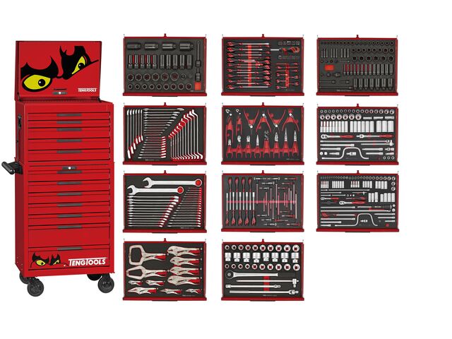 Servante d'atelier rouge haute 12 tiroirs - Mega Master - 528 pièces - rangement avec modules en mousse Teng Tools TKS26R528F - produit présenté par TORROS Equip Garage