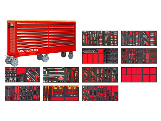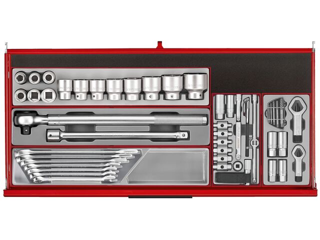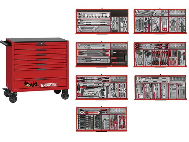 Cette servante d'atelier Midi Master Tools se compose d'un ensemble complet d'outils organisés selon le système unique Teng Tools, le tout rangé dans une servante large à 7 tiroirs.