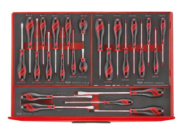 Ce set Midi Master FOAM Tools se compose d'un ensemble d'outils organisés dans le système unique de Teng Tools, le tout rangé dans une servante large avec 7 tiroirs.