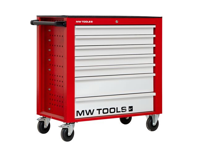 Servante d'atelier 7 tiroirs rouge et grise large 940 mm en acier soudé verrouillable roues ø125 mm MW Tools GW207 - Servante d'atelier vide