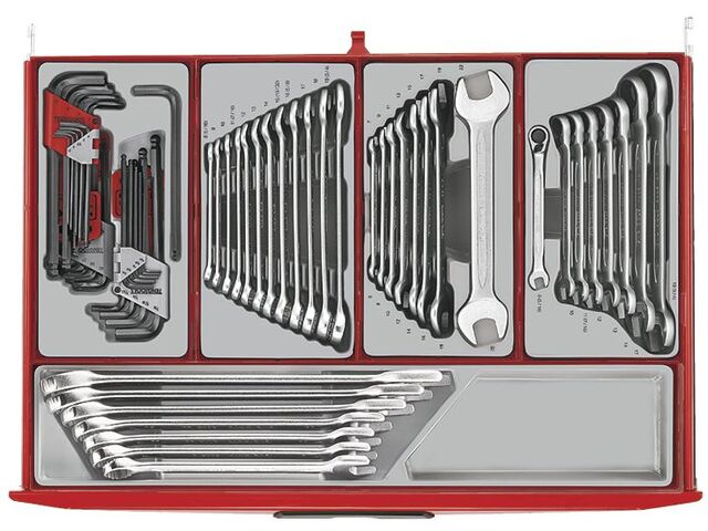 Ce set combine la servante d'atelier la plus populaire de Teng Tools avec le système de rangement en modules plastiques (PS trays).